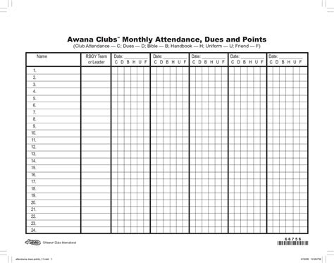 RQV - Online PDF awana-attendance-spreadsheet Paperback Gutenberg